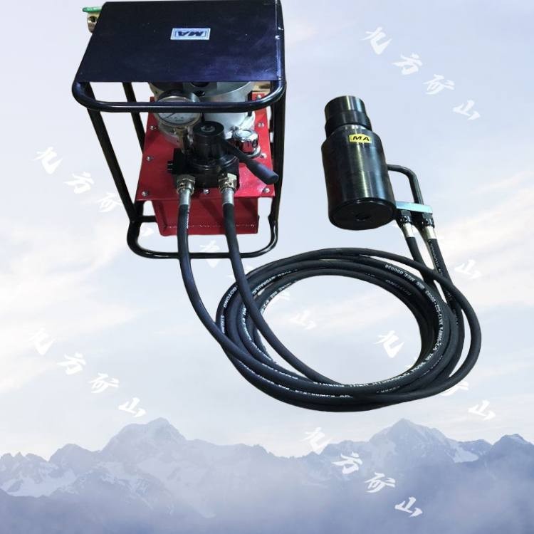 MQ22-400/60矿用锚索张拉机具用于煤矿井下锚索安装,由张拉千斤顶和气动液压泵组成。可根据要求调整输出压力驱动千斤顶对锚索施加要求的预紧力。该系统具有结构简单、重量轻、移动方便、密封好、事 故率少、使用方便等特点。