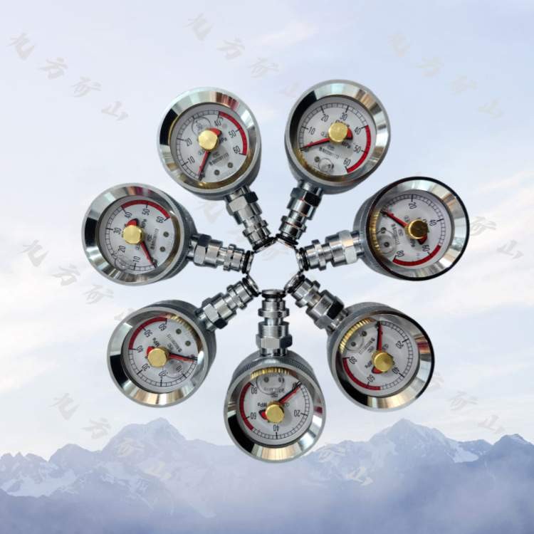 综采支架双针压力表用于实时监测综采液压支架的支撑工作阻力,以便掌握该工作面的工作压力和支架支护质量。是实时监测液压支柱压力变化的仪表;压力表使用不锈钢工艺、进口机芯、耐震表显等特点。